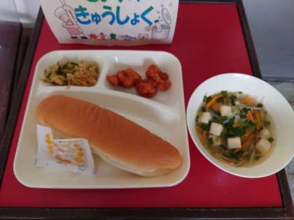 今日は、ヤンニョムチキン、もやしと豆腐のスープ、切り干し大根のナムルと韓国風メニューです。