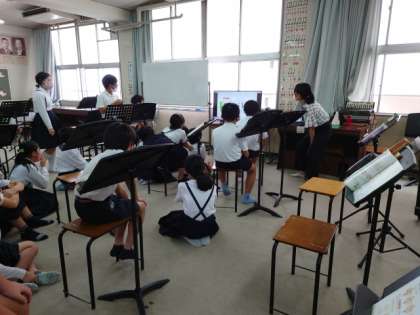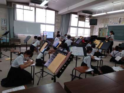 音楽科で、和音の中にある音をつないで旋律を作りをしました。