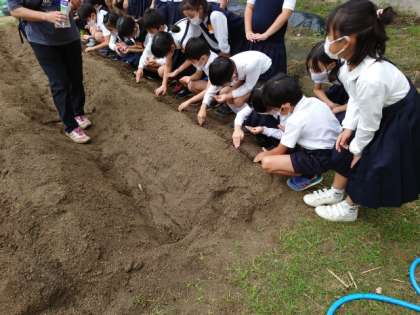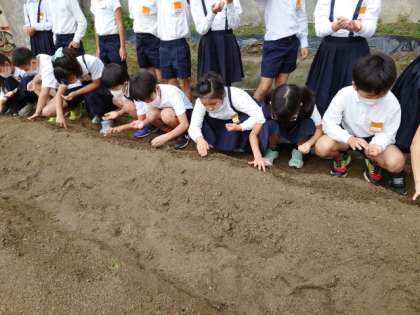 初めて見る種の小ささにおどろきながらもていねいに植えました。