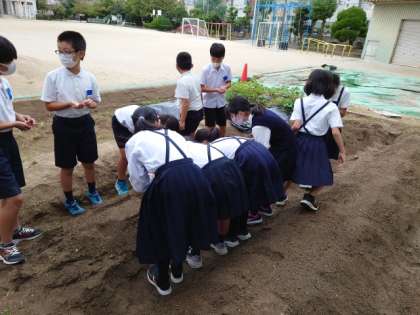 天王寺小学校では、毎年3年生と5年生が天王寺かぶらを育てます。