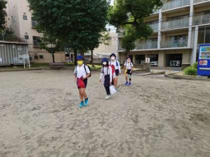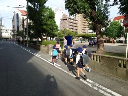 どの班も、集団登校の集合場所に集まって、並んで登校できていました。