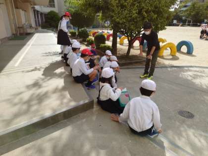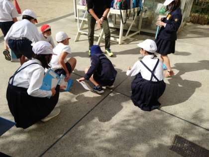 日なたと日かげではどんな違いがあるのかを予想して、実際に外へ出て調べました。