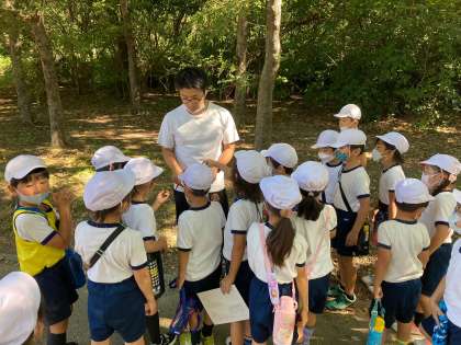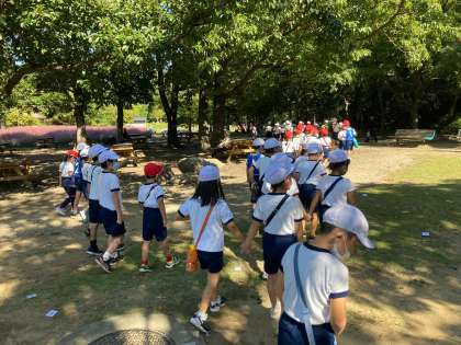 公園では、2年生といっしょにグループを組んでオリエンテーリングをしました。