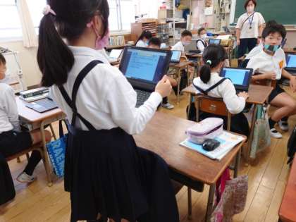 それらがお店やお客さんにとってどのように役に立つのか考えて、ロイロノートを使ってまとめたり意見を交換したりしました。
