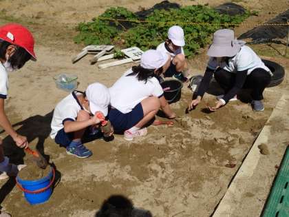 砂を量りとったり、固めて形を作ったりと様々な活動を協力して行いました。