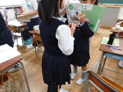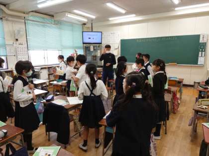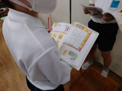 自分の良いところをマス目に書いて、友だちに当ててもらいます。