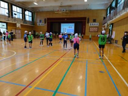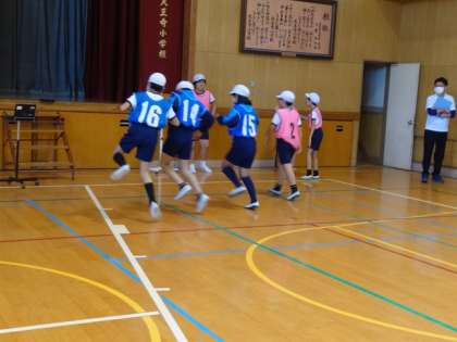 友だちと一緒に動きを工夫しながら最後まで楽しく動きづくりに取り組んでいました。