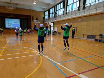 今日はいろいろなジャンプをして体の動きを高める運動の授業を校内で公開しました。