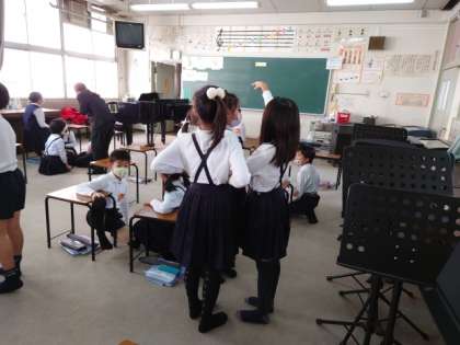 スクールアドバイザーの先生に指導していただく音楽の研究授業をしました。