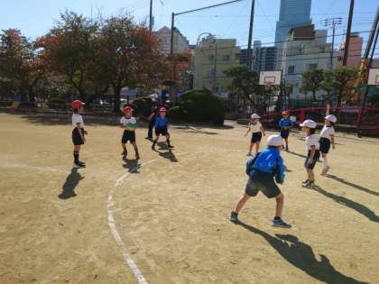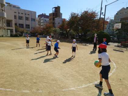 体育科で円形ドッジボールをしました。