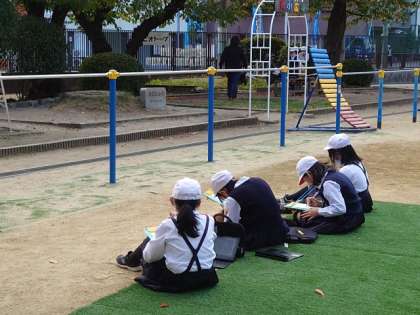 理科の学習で、校庭の季節の移り変わりを調べました。