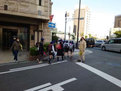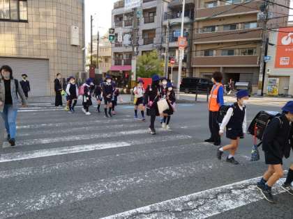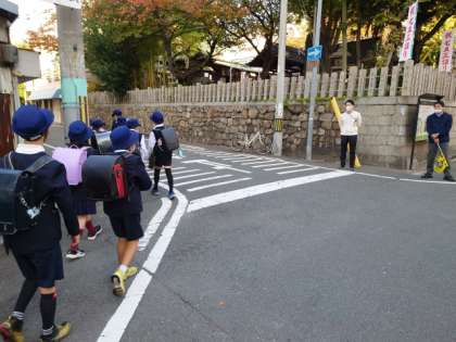PTAの皆さんは、交差点などに立って安全を見守ってくださいます。