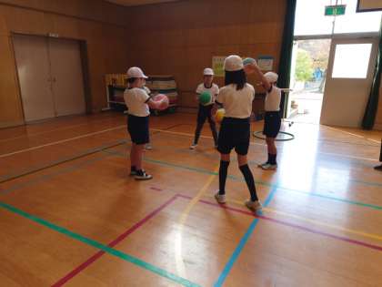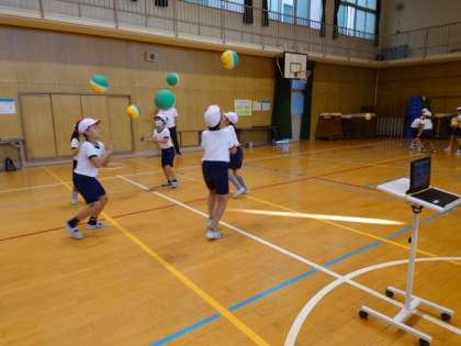 どのようにボールをついたり動いたりすれば上手にできるか、コツをみんなで考えながら楽しく運動しました。