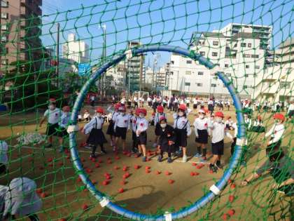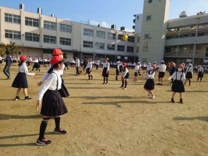 今日の体育朝会は、暖かい日差しに恵まれ、楽しく取り組むことができました。
