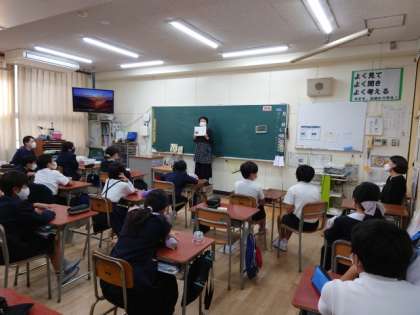 今日も天王寺「ぼちぼち」の皆さんにお越しいただき、4〜6年生にお話の会をしていただきました。