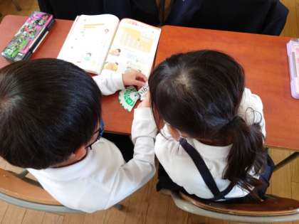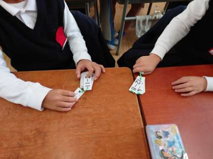 算数の時間にけいさんかあどを使って、もんだいの出し合いっこをしました。