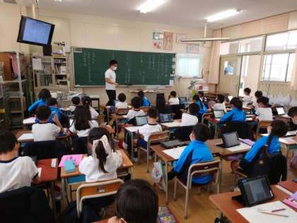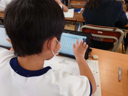 ロイロノートに貼り付けたデジタル教科書を使いました。