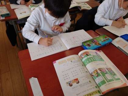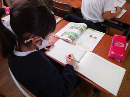 黒板を見ながらノートに書くのもずいぶんなれました。