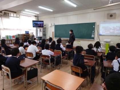 天王寺警察署の交通課の方をゲストティーチャーにお迎えして、オンラインで学習しました。