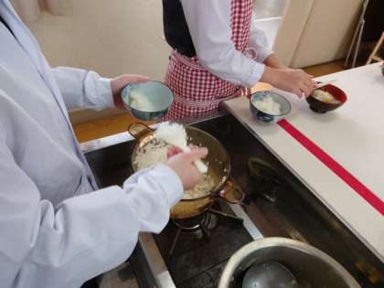 はじめて鍋でご飯を炊きましたが、ほとんどの班が上手に炊けていました。
