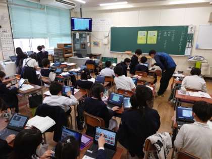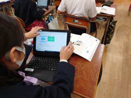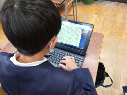 国語科で、その土地の食べ物を調べてパンフレットを作って紹介する学習をしています。