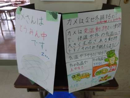代々の6年生が廊下で飼っているカメも、この寒さで冬眠に入りました。