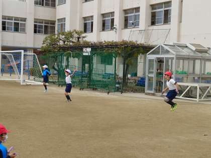 友だちに数えてもらいながら、後ろ跳びに挑戦です。