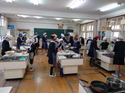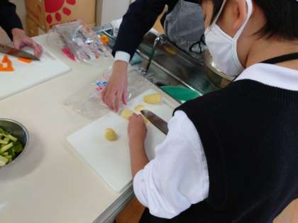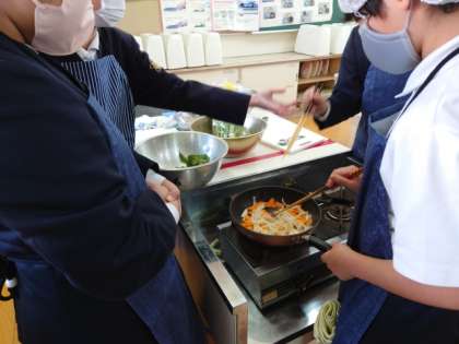 家庭科の調理実習で、炒め物に挑戦しました。
