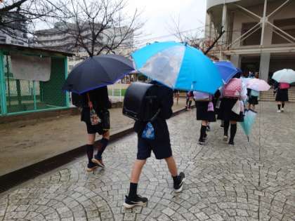 久しぶりに雨の中を登校です。