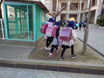 登校してくる子どもたちも防寒着を着こんで、ちょっとモコモコした感じです。