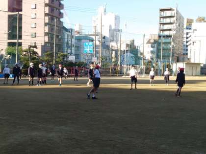 一方、寒さに負けず、朝から運動場でドッジボールに興じる高学年の人もたくさんいます。元気!