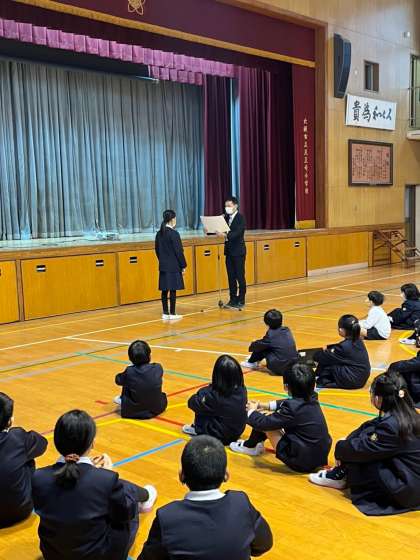 学校長の講話では、2学期のふりかえりをしっかりすることや、それを3学期につなげることを話しました。