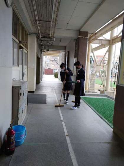 職員室前では、美化委員の6年生が朝から清掃活動をしてくれています。