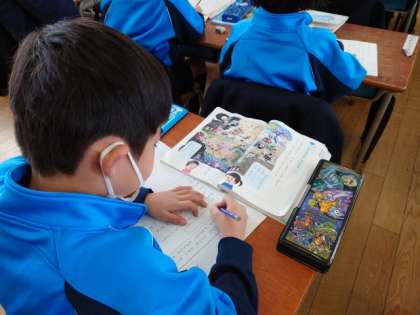 昔話のように、〇〇から生まれた主人公を考えて、お話を作ります。