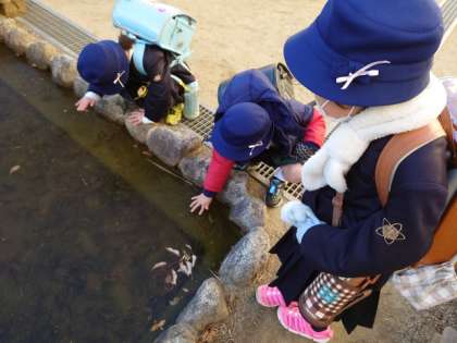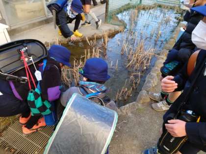 それでも学校のザリガニ池に氷が張っているのを見つけると、早速人だかりができました。