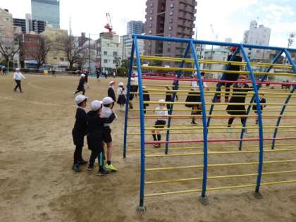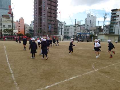 これだけ寒い日でも、昼休みにはたくさんの子が外に出て元気に遊んでいます。