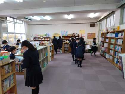 晴耕雨読で、休み時間にはたくさんの人が図書室に本を借りに来ていました。