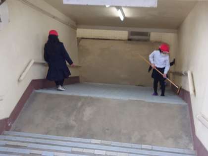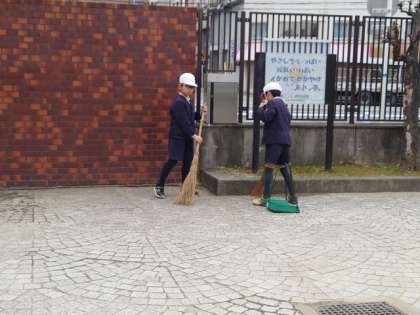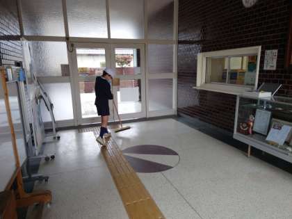 いつもみんなが通る玄関や地下道もていねいに掃除しています。