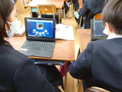 チュニジアの家の特徴を読み取り、ロイロノートを使って共有しながら学習をすすめました。