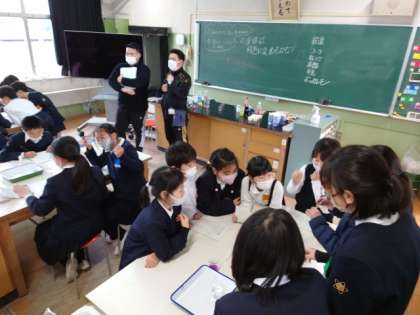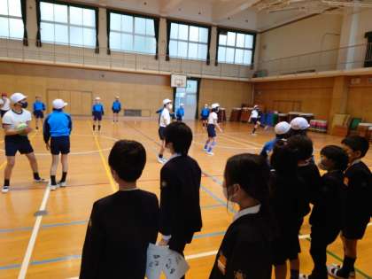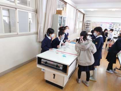少人数のグループで、校内をオリエンテーリング風に回ります。