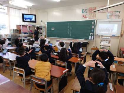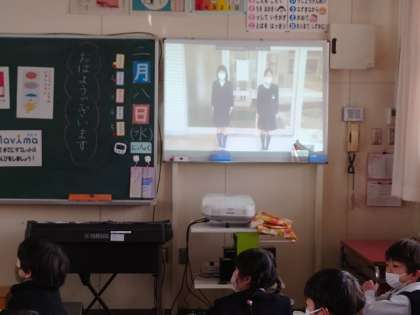 今朝の児童朝会は、Teamsを使ったビデオ集会です。