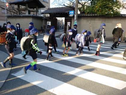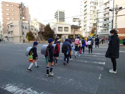 今日は2月の登校指導とPTA交通安全指導の日です。