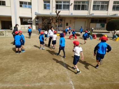 体ほぐしの運動遊びで、ふえ鬼やこおり鬼など、いろいろな鬼遊びをしました。