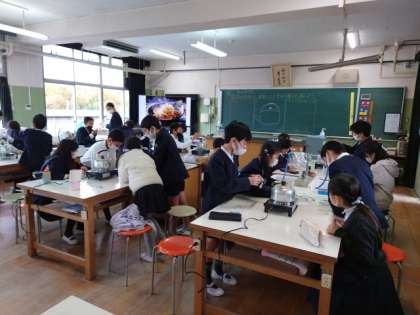 理科で、お湯をわかした時に出てくる湯気について調べました。