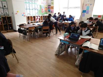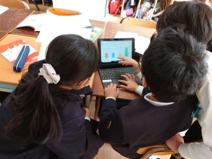 今日はロイロノートを使ったアンケート結果の集計を見て、どんな内容をどのように報告するのかを相談しました。