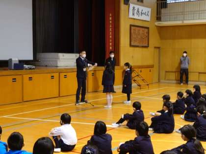 これまでの成長を振り返り、6年生は卒業までの、1年生から5年生は学年末までの1か月をどのように過ごして行けばよいのかをしっかり考えましょう、とお話しをしてくださいました。