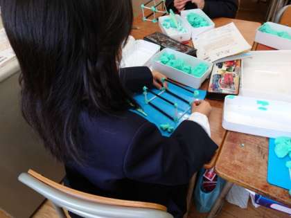 今日は粘土とストローを使って、箱の形を作りました。
