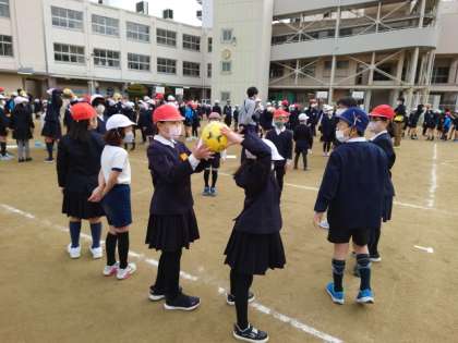 たて割りのグループで、わたし方を変えながらボールを回します。
