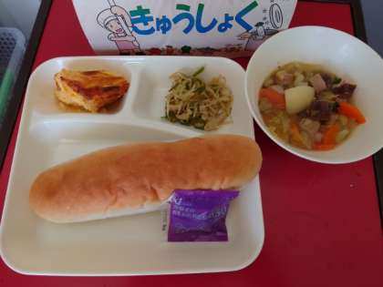 今日のメニューは、ポトフ、カレーソテー、焼きプリンです。