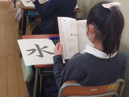 今日はこれまで学習してきた字をふりかえって、最後の文字に挑戦しました。